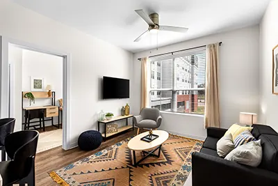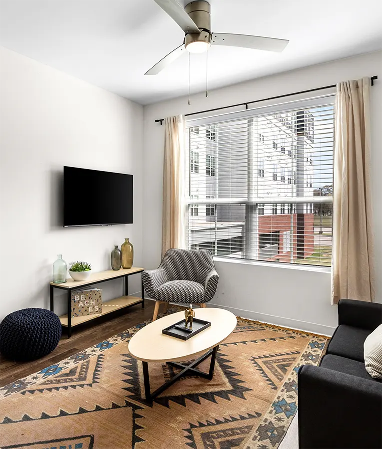 HERE lets you live on your terms — whether that means a quiet morning review session by the pool or a rooftop celebration after finals. From private studios to shared multi-bedroom layouts, our furnished apartments are built for every chapter of off-campus life, from those just starting out to grad students. Located in “The Box,” we’re close to campus, but made for the moments that happen beyond it.